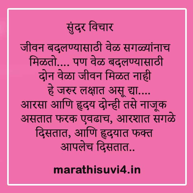 Sundar Suvichar Marathi Status - Browse & enjoy beautiful collection of marathi quotes. Sundar Suvichar Marathi Status - Suvichar for life, success, stress, students, parents, love, good morning, status and more.